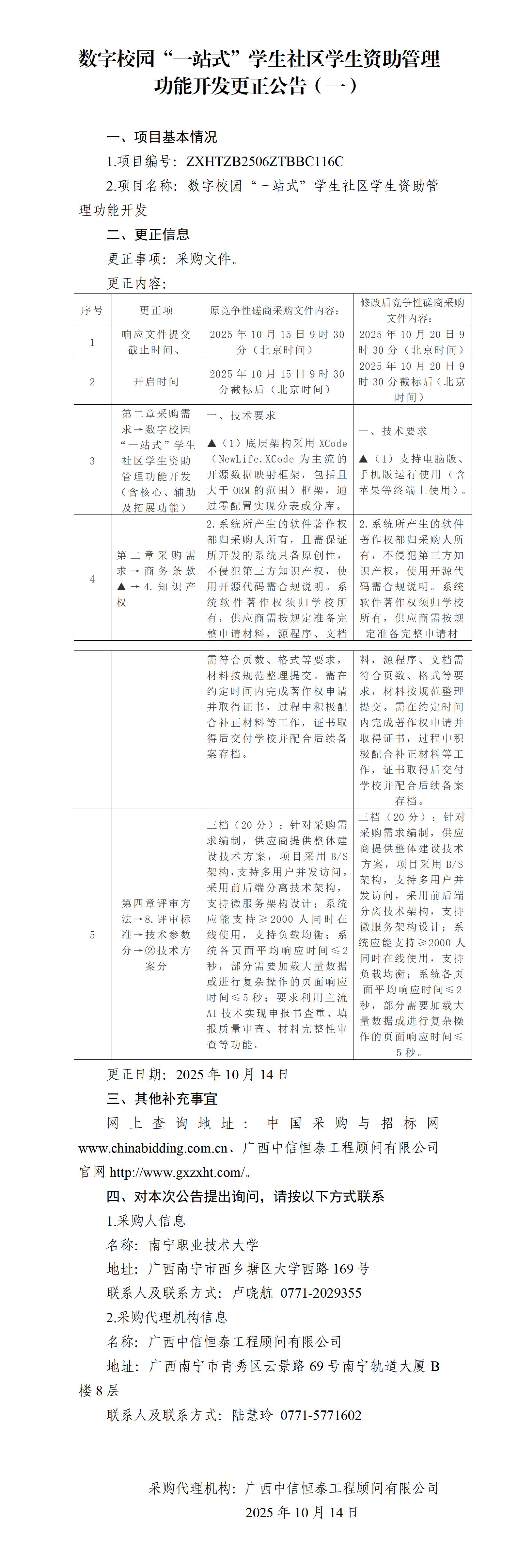 数字校园“一站式”学生社区学生资助管理功能开发更正公告(一)