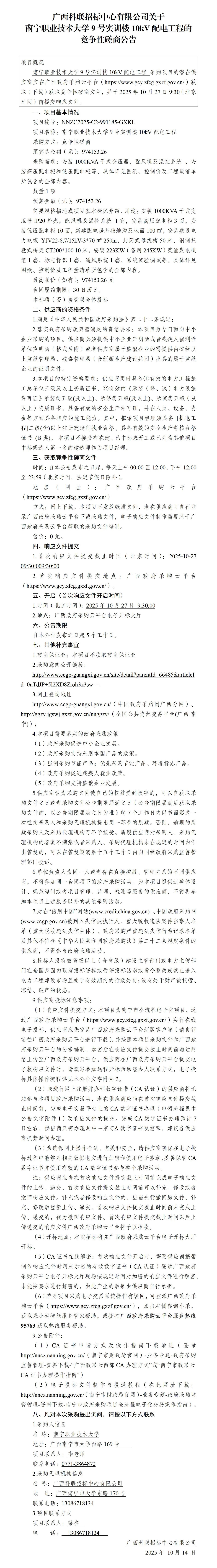 广西科联招标中心有限公司关于南宁职业技术大学9号实训楼10kV配电工程的竞争性磋商公告