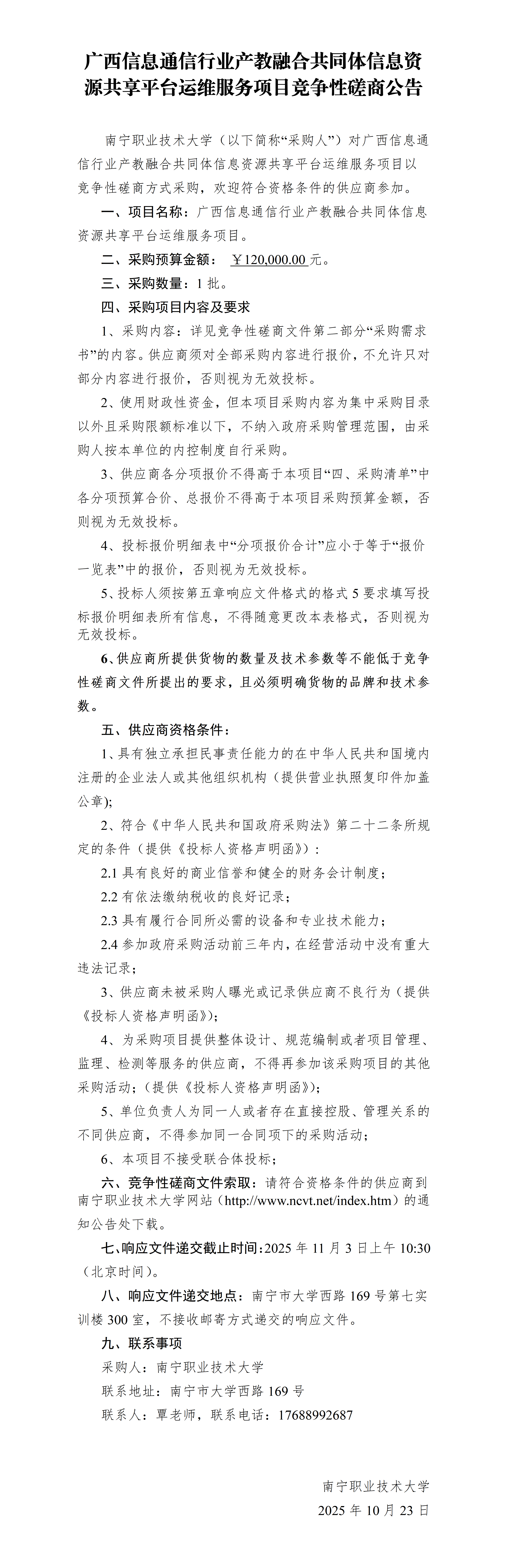 广西信息通信行业产教融合共同体信息资源共享平台运维服务项目竞争性磋商公告