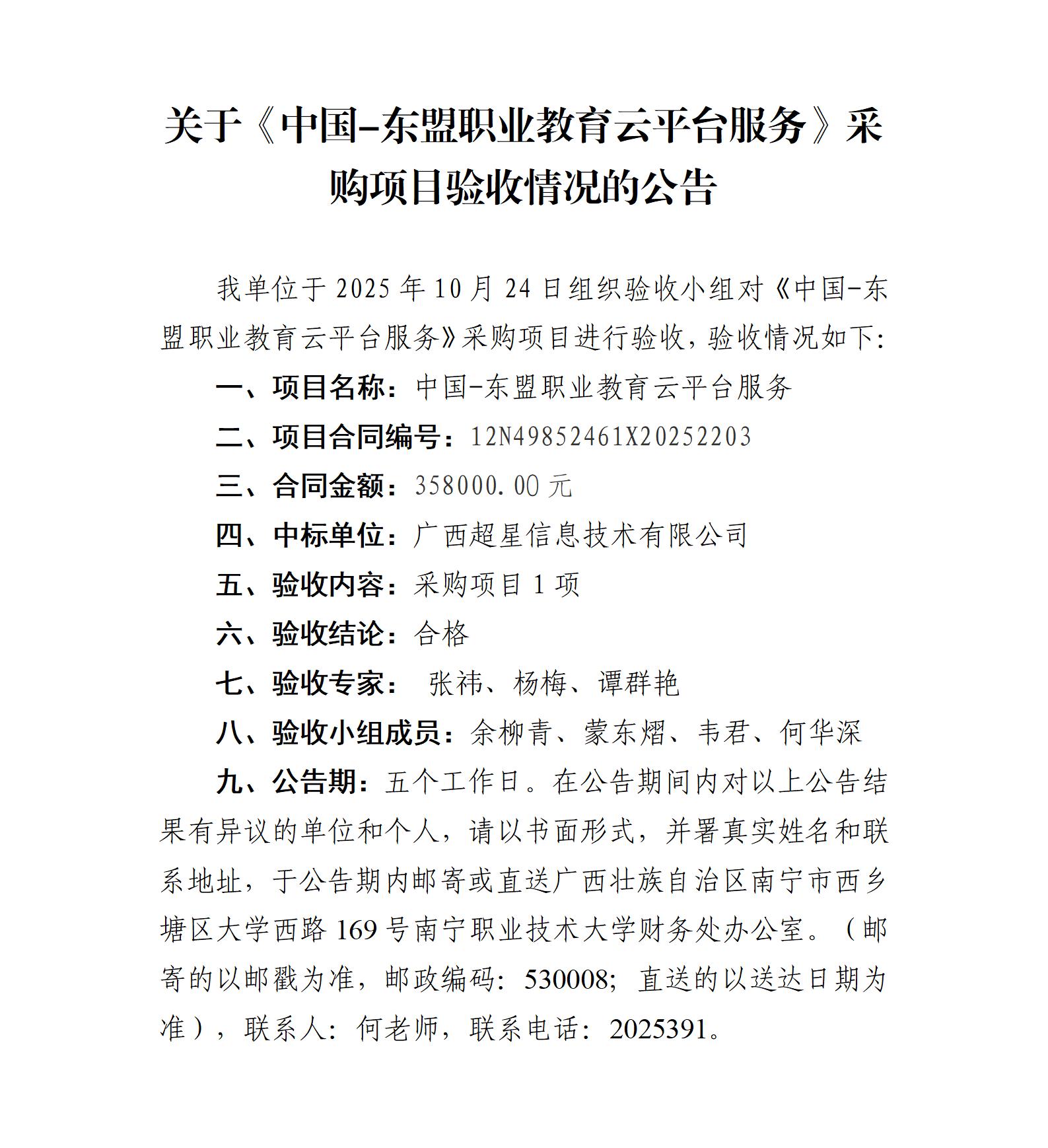 关于《中国-东盟职业教育云平台服务》采购项目验收情况的公告