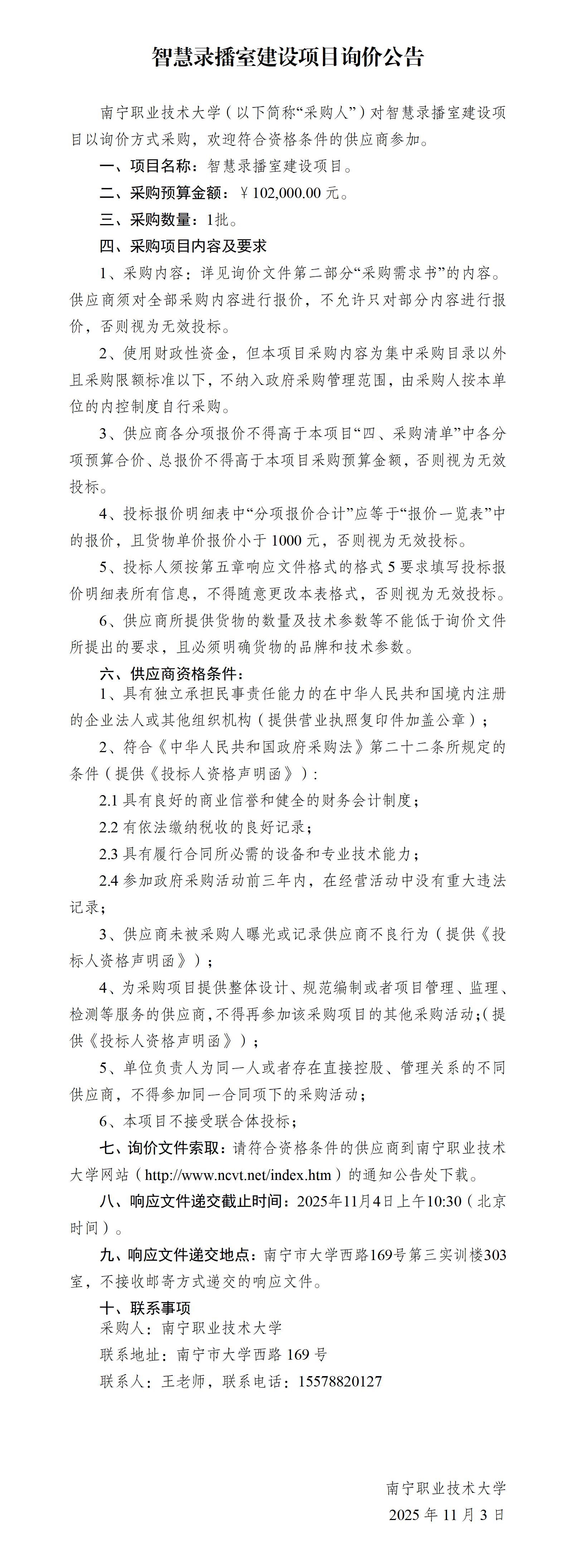 附件:智慧录播室建设项目询价文件.docx