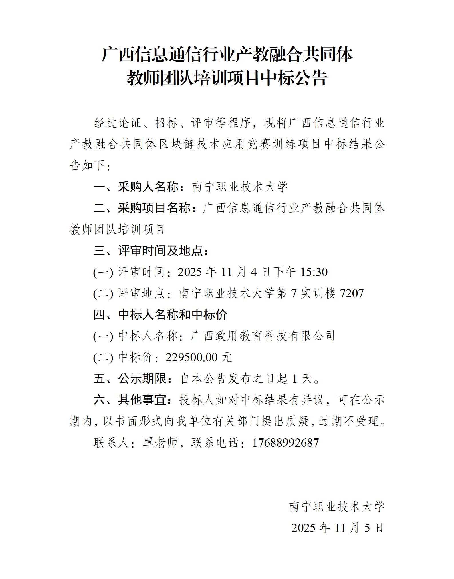 广西信息通信行业产教融合共同体教师团队培训项目中标公告