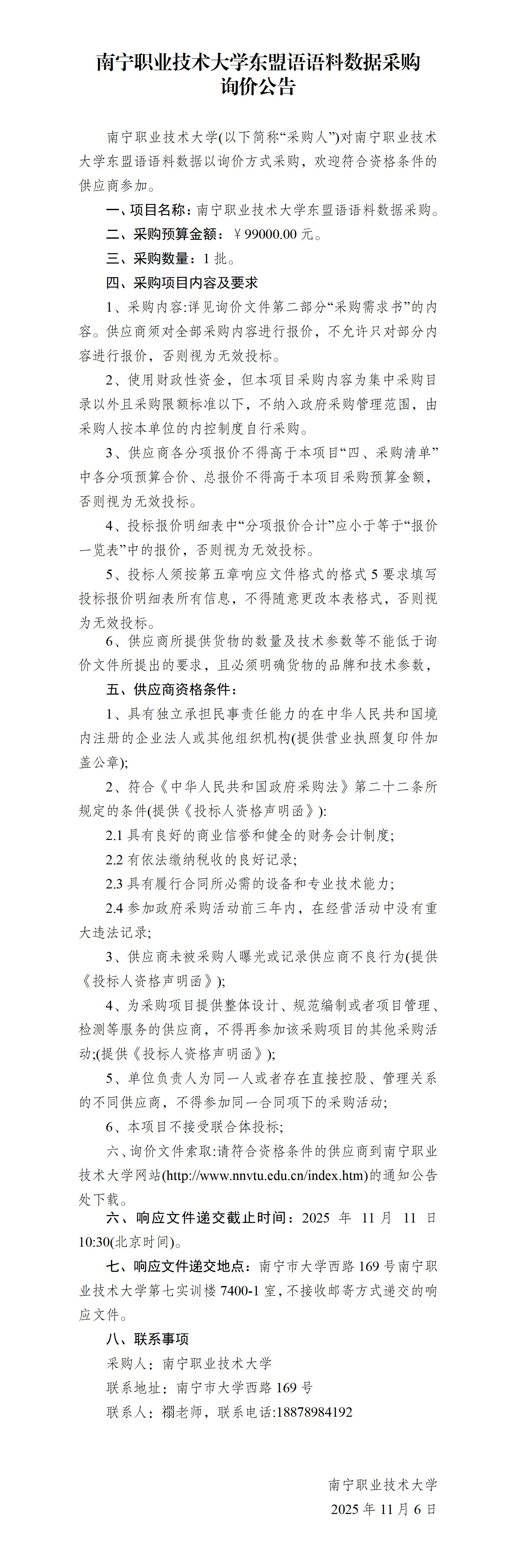 附件:南宁职业技术大学东盟语语料数据采购项目询价文件.docx