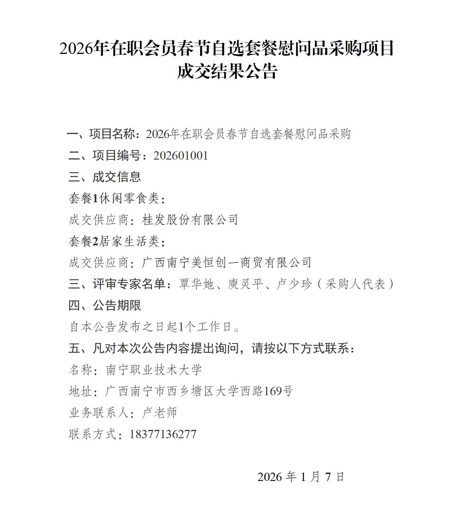 2026年在职会员春节自选套餐慰问品采购项目成交结果公告