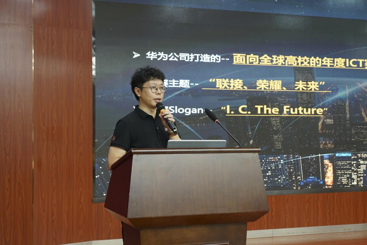 会上,南宁职业技术大学党委常委、副校长胡卫东在致辞中强调,学校作为国家“双高计划”建设单位、全国领先级华为ICT学院,长期致力于ICT领域高素质技术技能人才培养。近年来,学校与华为深度合作,搭建“课程—认证—竞赛—实习”一体化人才培养模式,已累计培养千余名华为认证人才,并在往届ICT大赛中屡次获奖。他表示,学校将全力做好赛事服务保障,通过“以赛促学、以赛促教”,为广西数字经济发展输送更多“用得上、留得住、能发展”的ICT专业人才。