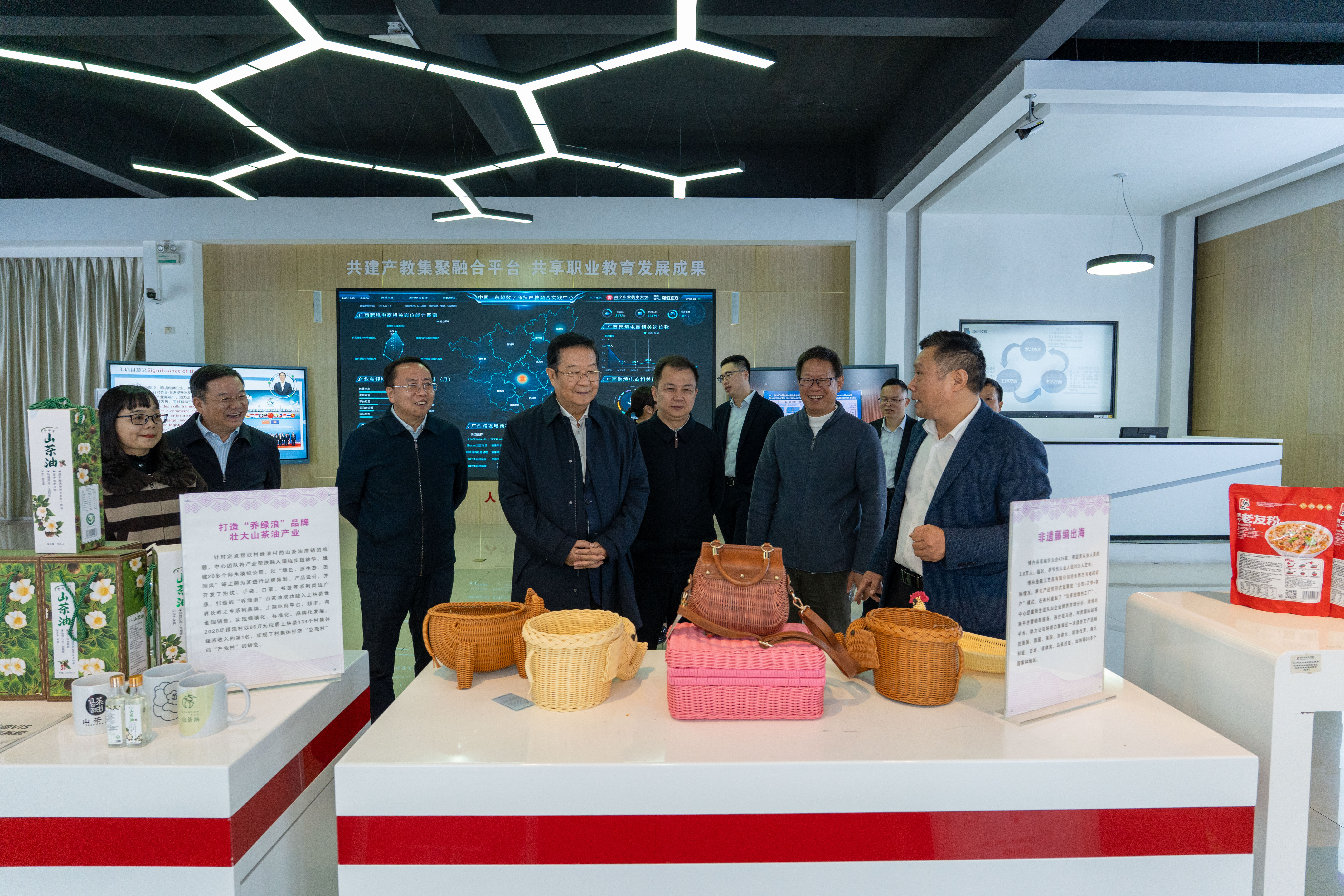 数字经济学院负责人向刘利民介绍桂品出海情况(南职融媒朱明华/摄)