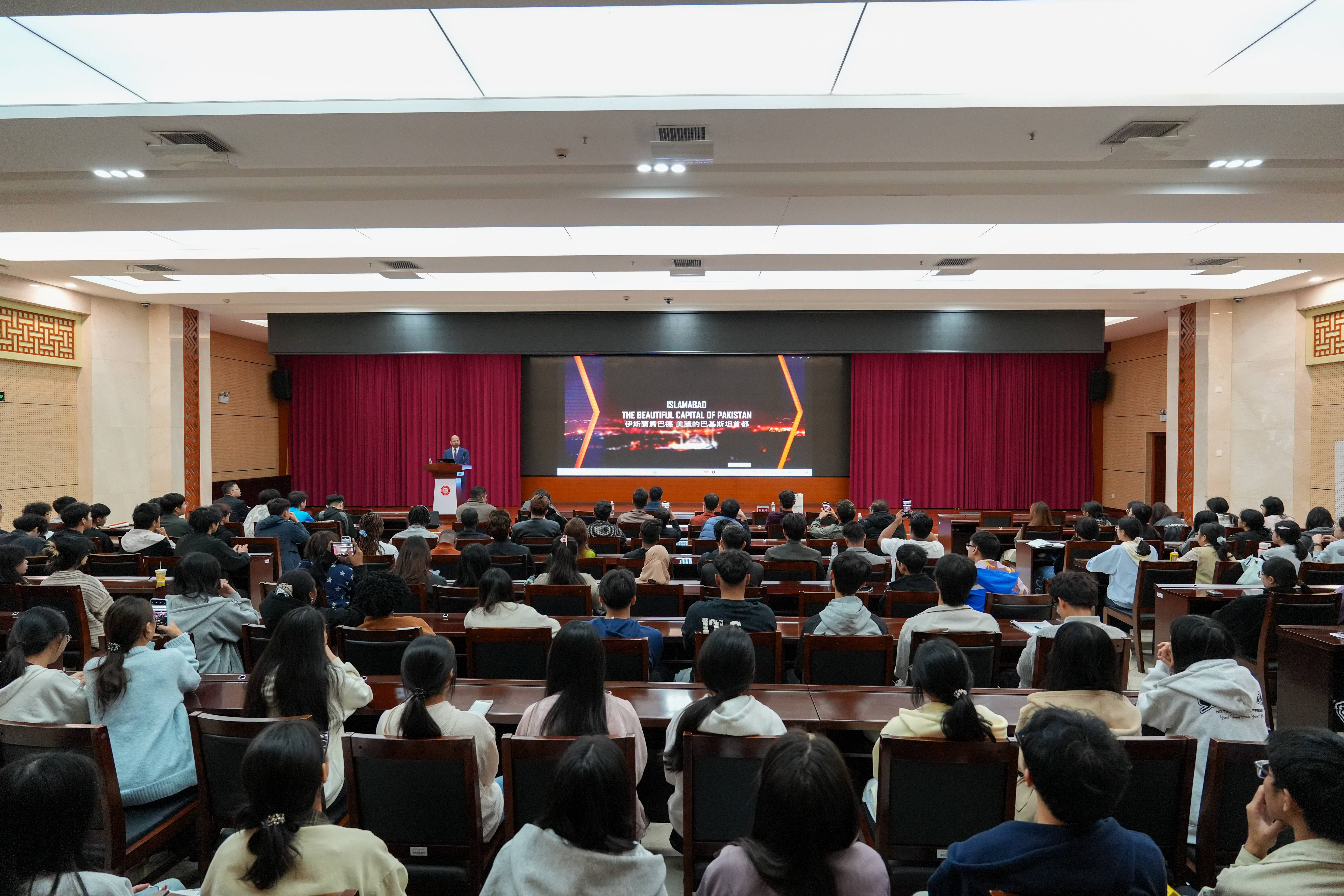 会后,萨达尔·穆罕默德在我校会议中心二号厅举行巴基斯坦推介会,向与会中外师生介绍了巴基斯坦的国家概况、历史文化、资源禀赋及发展机遇。