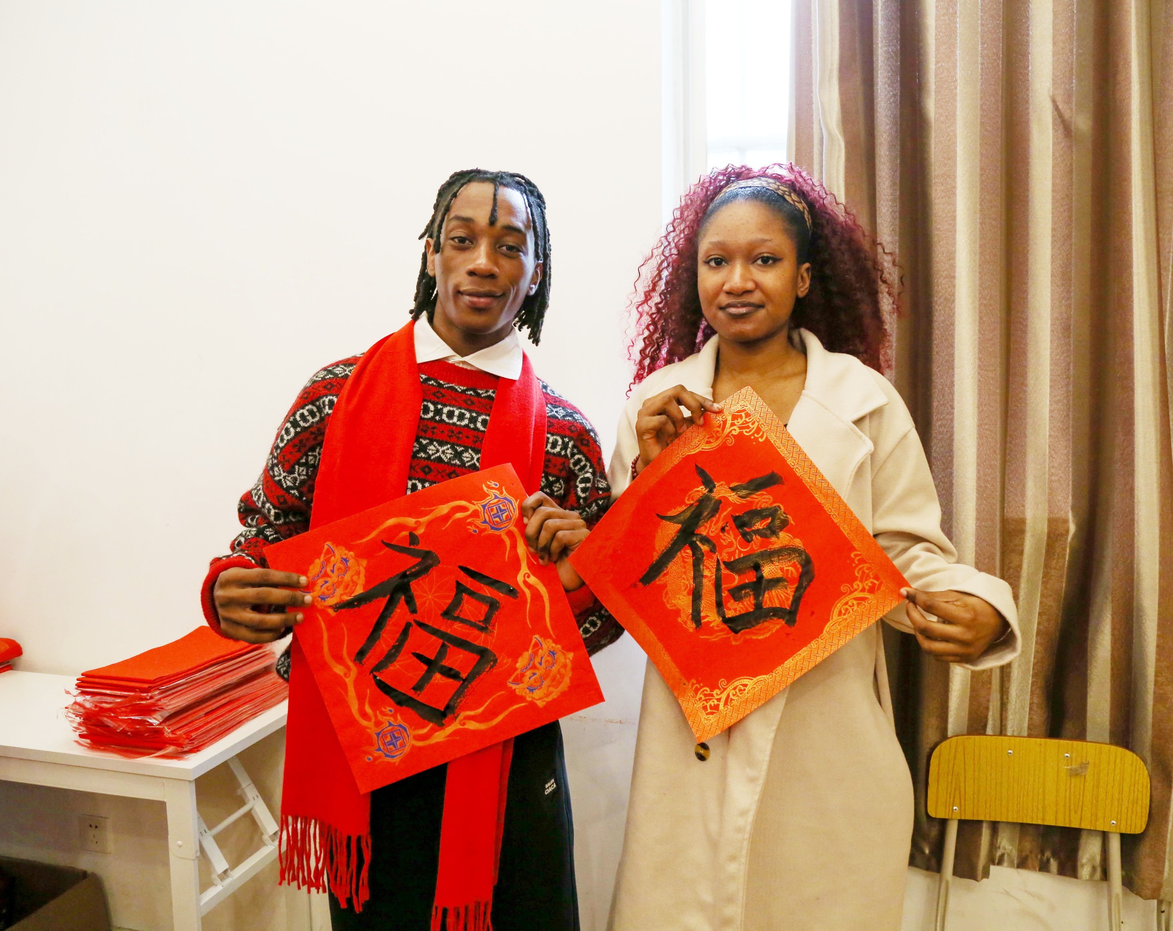 留学生书写“福”字(南职融媒 黄垣山/摄)