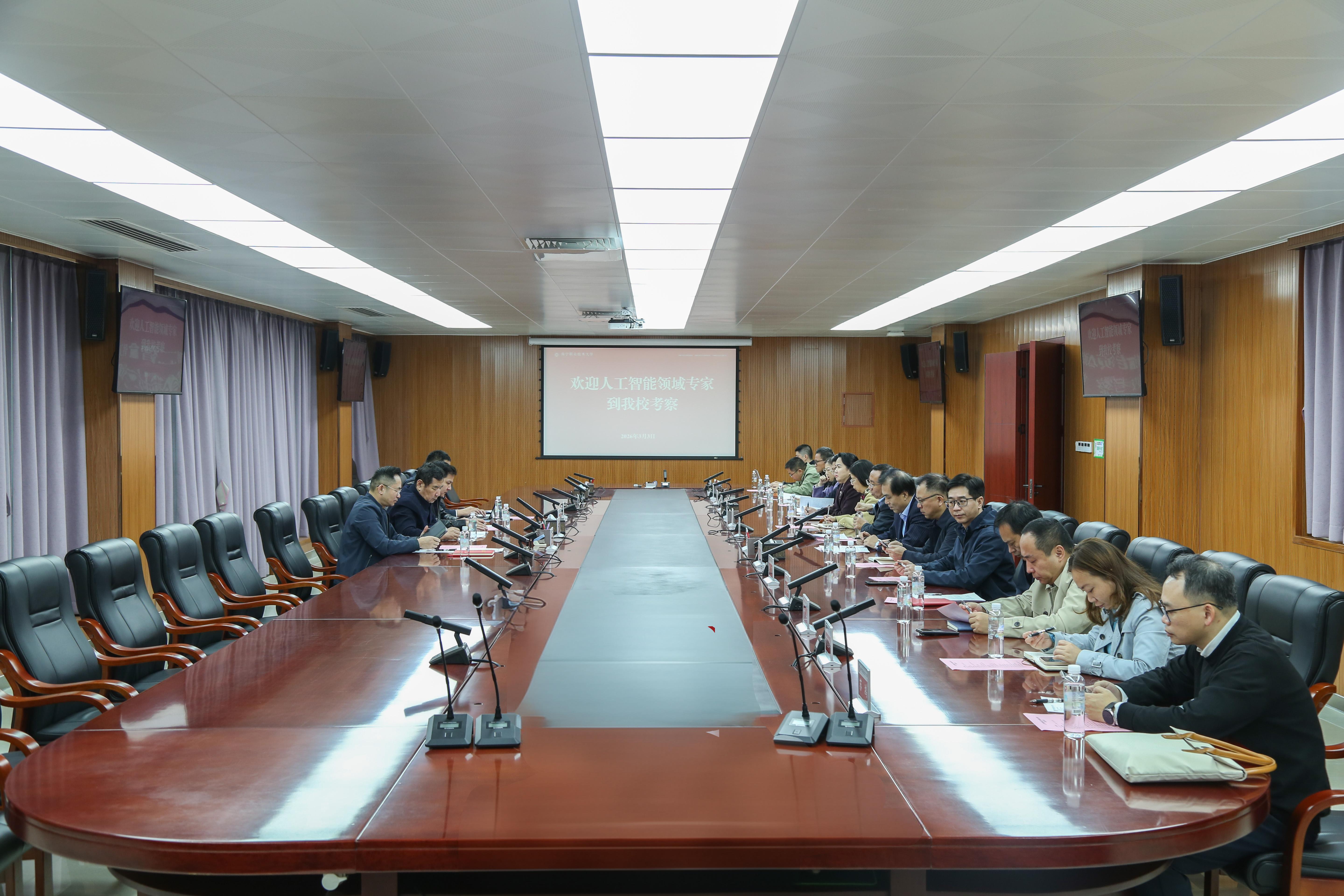 专家团队实地考察了我校人工智能学院、智能工程学院教学实训场地,详细了解了学校在AI技术应用、数字孪生工厂建设等方面的实践成果。