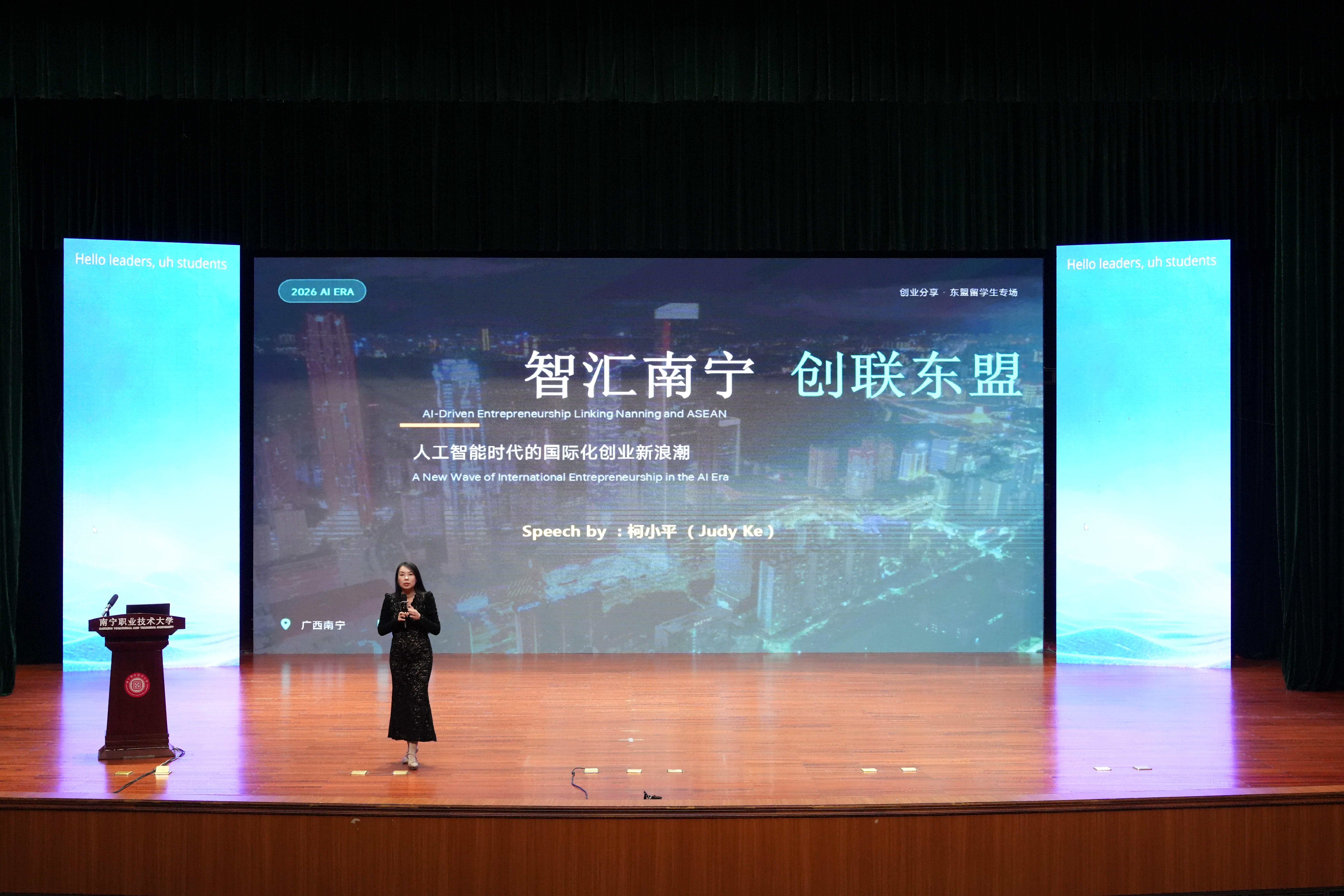 3月9日下午,由南宁市外事办公室、南宁职业技术大学主办的“智汇南A・共创未来:南A东盟谷高校专题宣讲会”,在学校大礼堂成功举办。南宁市外事办公室副主任宋尉,学校党委副书记、校长宾月景,党委常委、副校长李东升,广西柯式企业管理咨询有限公司总经理、越南Wintop Global有限公司总经理、XTransfer全球代言人柯小平出席活动。