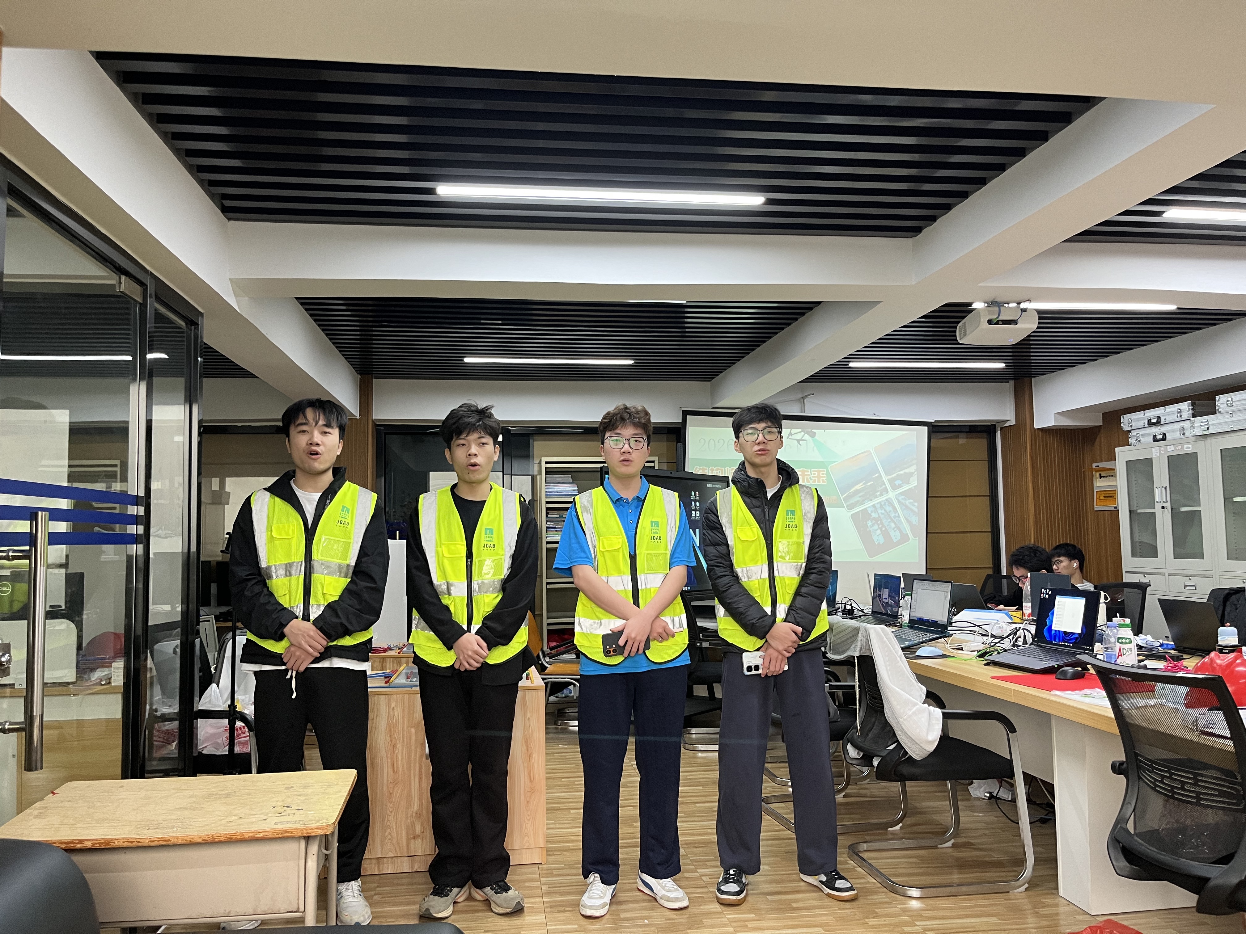 我校获金奖学生团队正在进行赛前演练(李娜/摄)