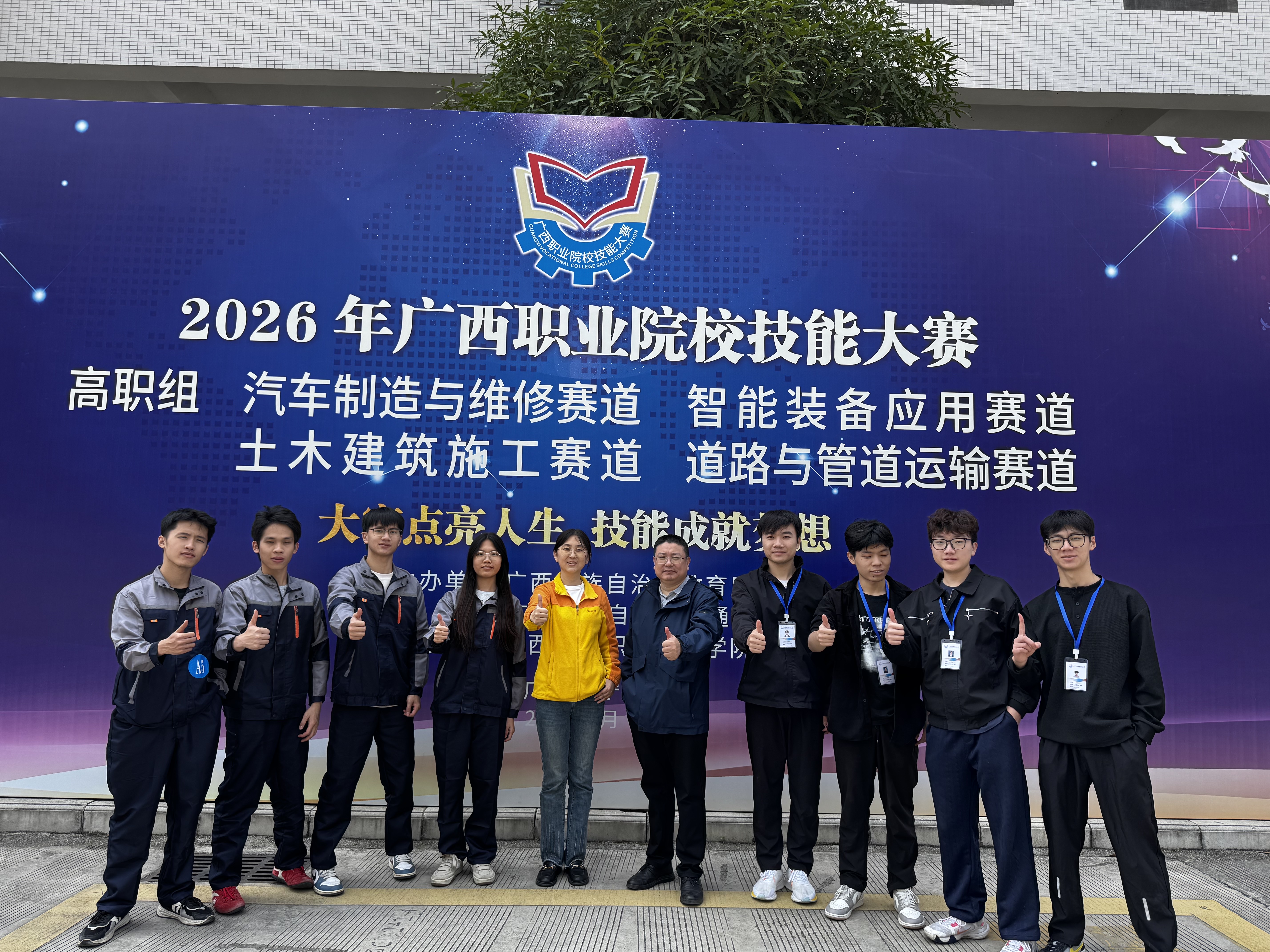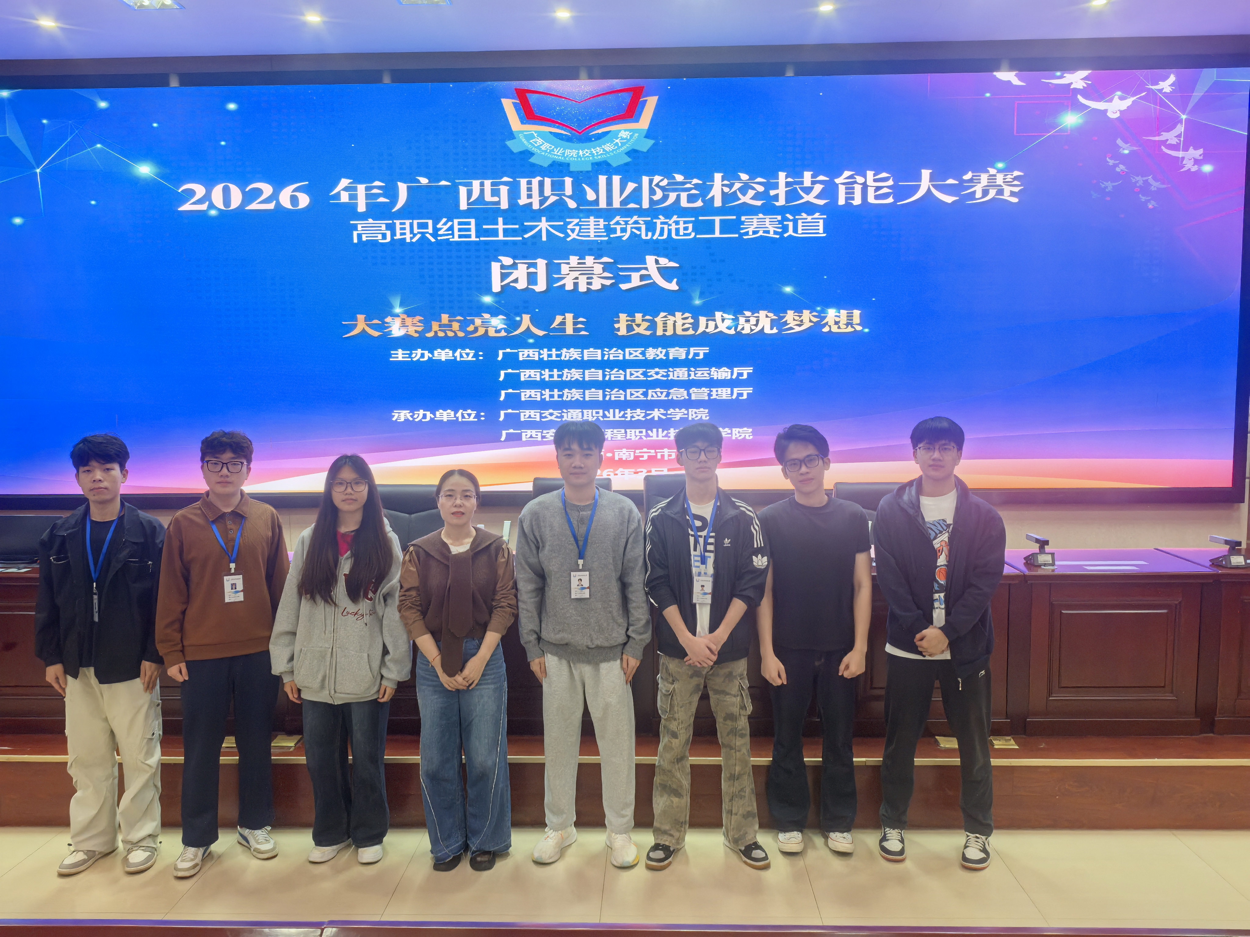 近日,2026年广西职业院校技能大赛高职组土木建筑施工赛道圆满落幕。我校智慧城市学院职业本科建筑工程专业两支参赛队双双告捷,由李娜、高云河老师指导的一队荣获金奖,黄臣臣、王静老师指导的二队摘得银奖。