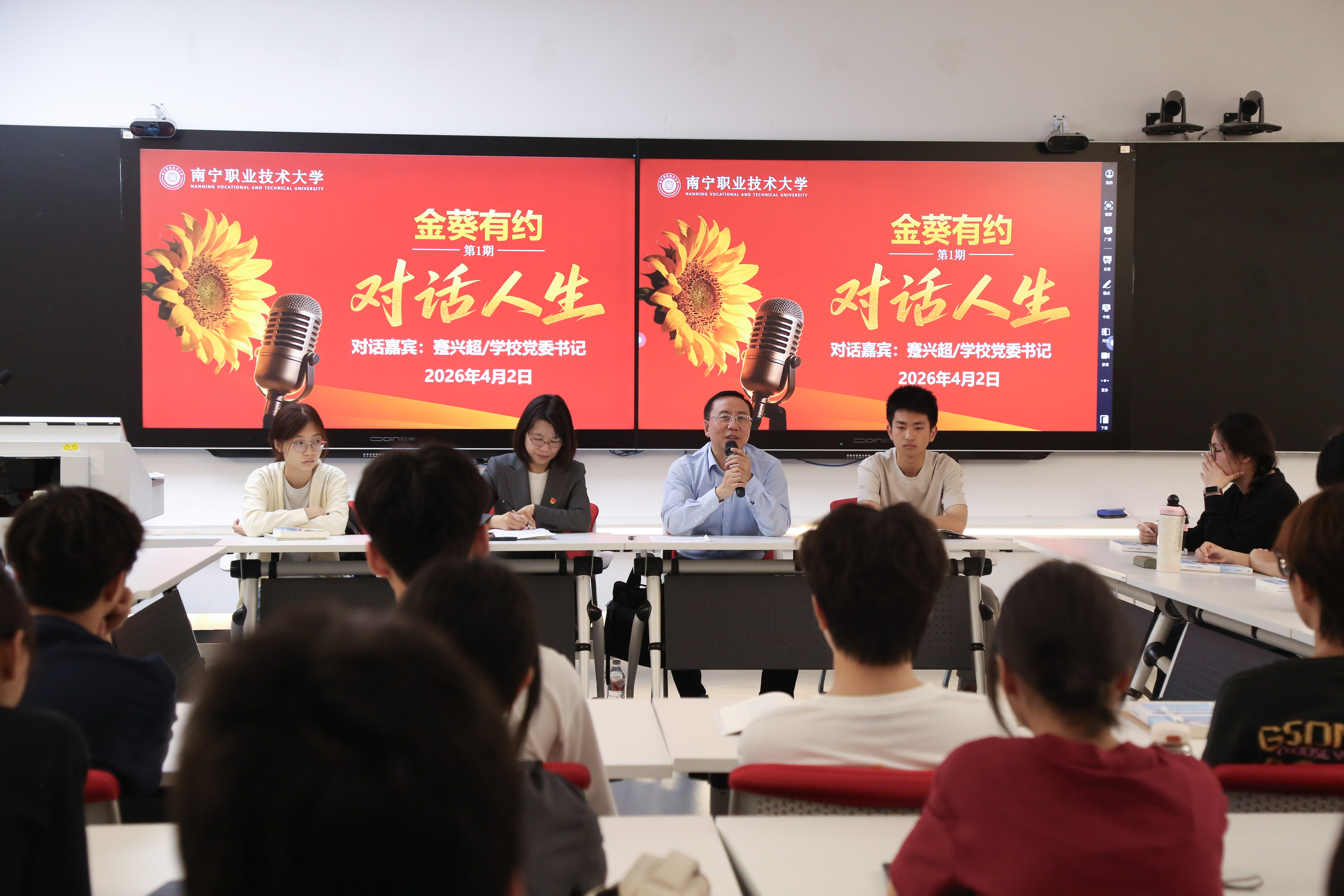 此次对话是“金葵有约”思政课堂互动平台首期活动,通过与学生面对面交流,创设具有真实性、思考性和开放性的课堂情境,引导学生在逻辑思辨中明理、在情感共鸣中真懂真信,不断提升思政课的针对性和吸引力。