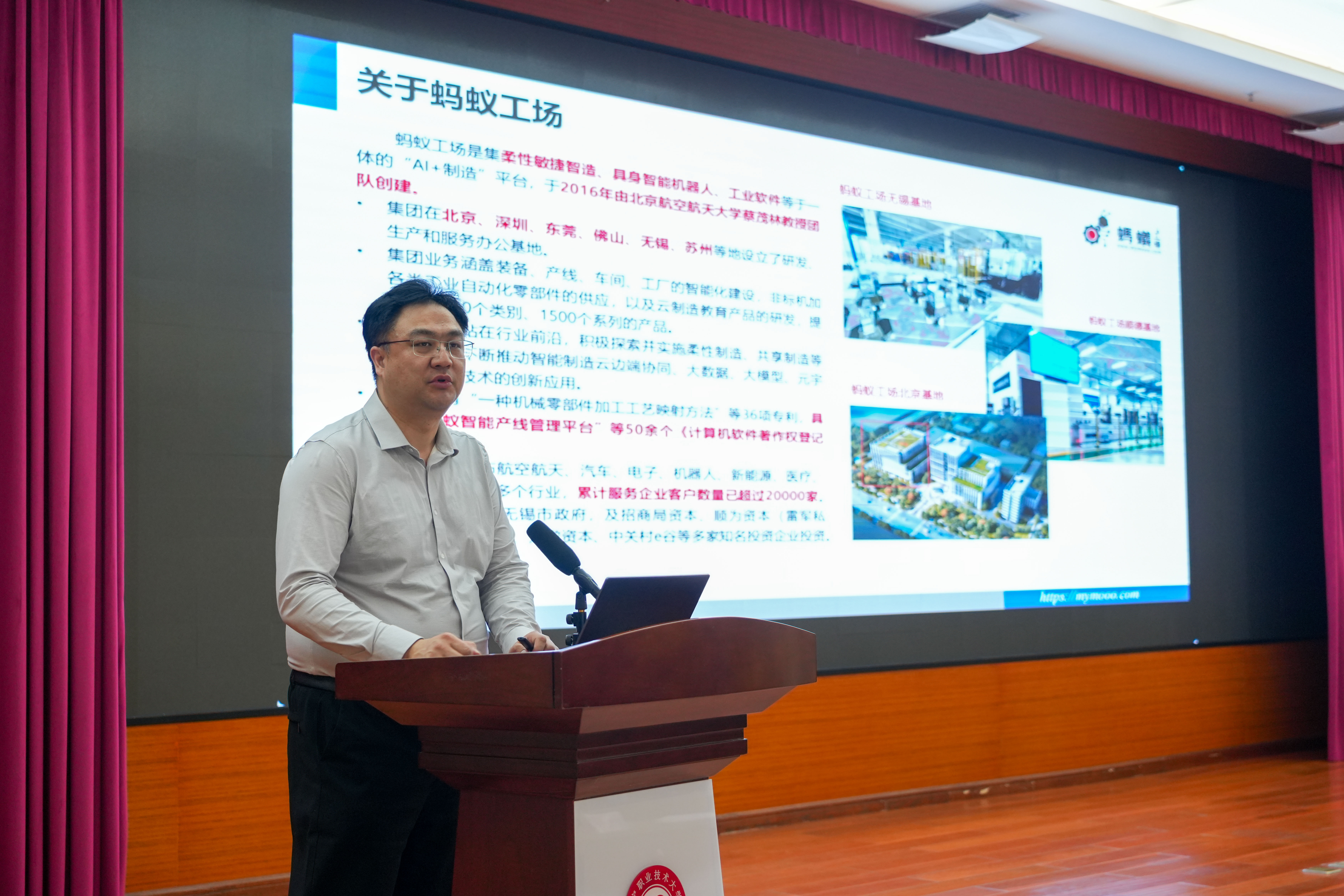 北京蚂蚁工场智造科技有限公司总经理栗翔作专题报告(南职融媒 李嘉文/摄)