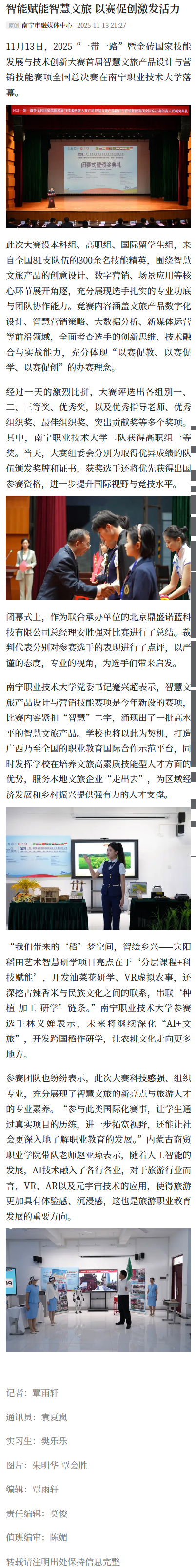2025“一带一路”暨金砖国家技能发展与技术创新大赛首届智慧文旅产品设计与营销技能赛项全国总决赛在南宁职大圆满举办