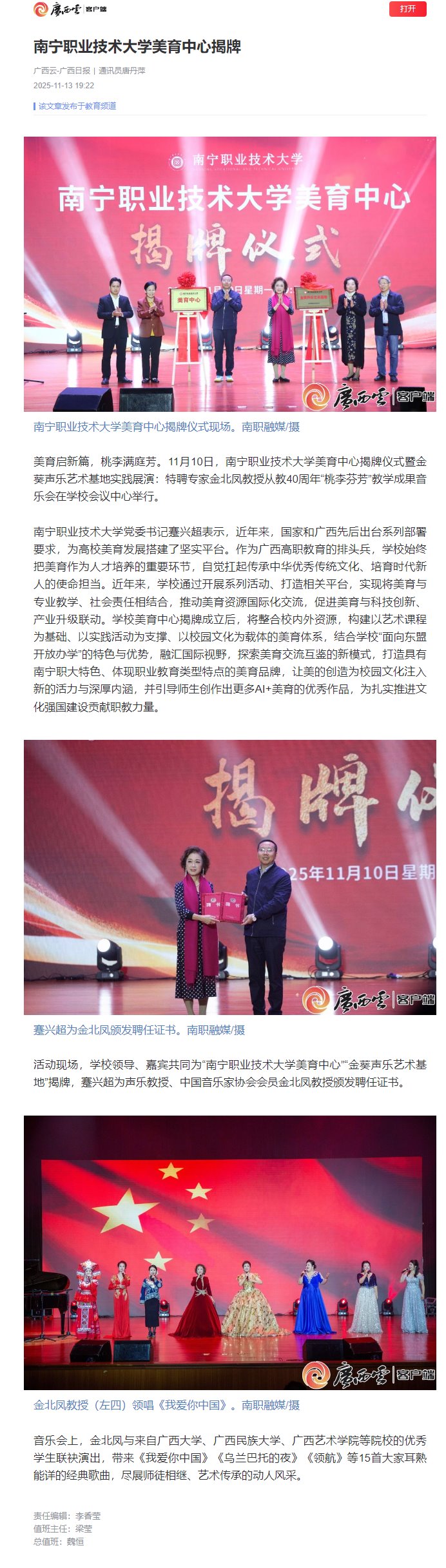 南宁职业技术大学美育中心揭牌