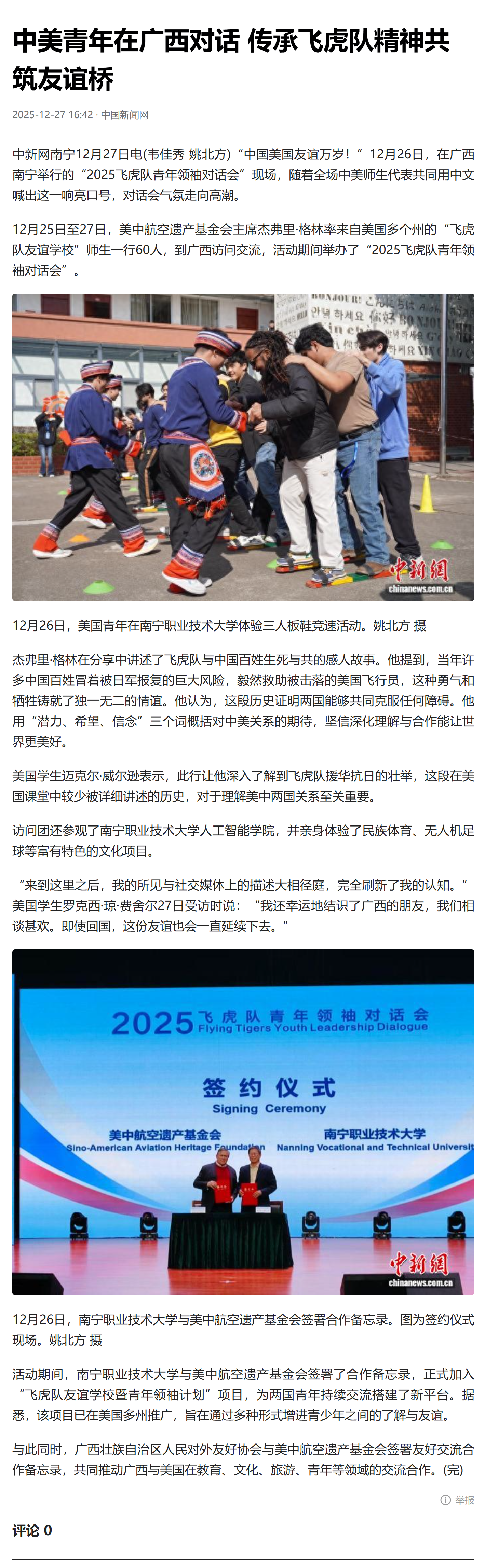 中美青年在广西对话 传承飞虎队精神共筑友谊桥