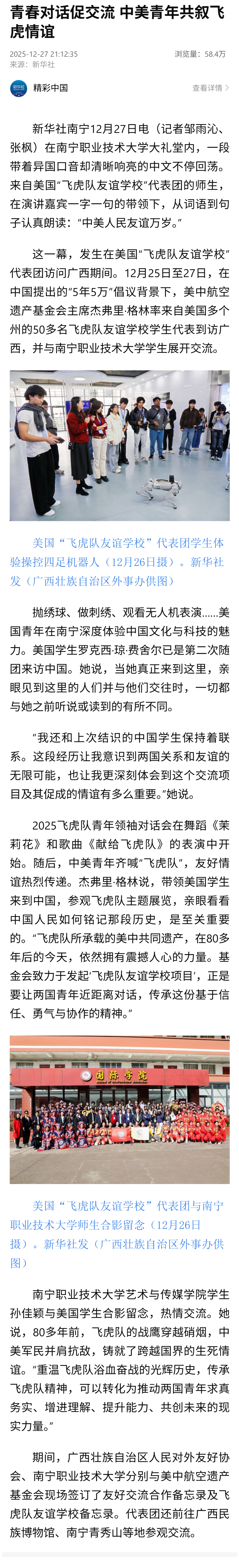 广西南宁职大举办 2025 飞虎队青年领袖对话会 共叙中美民间友谊