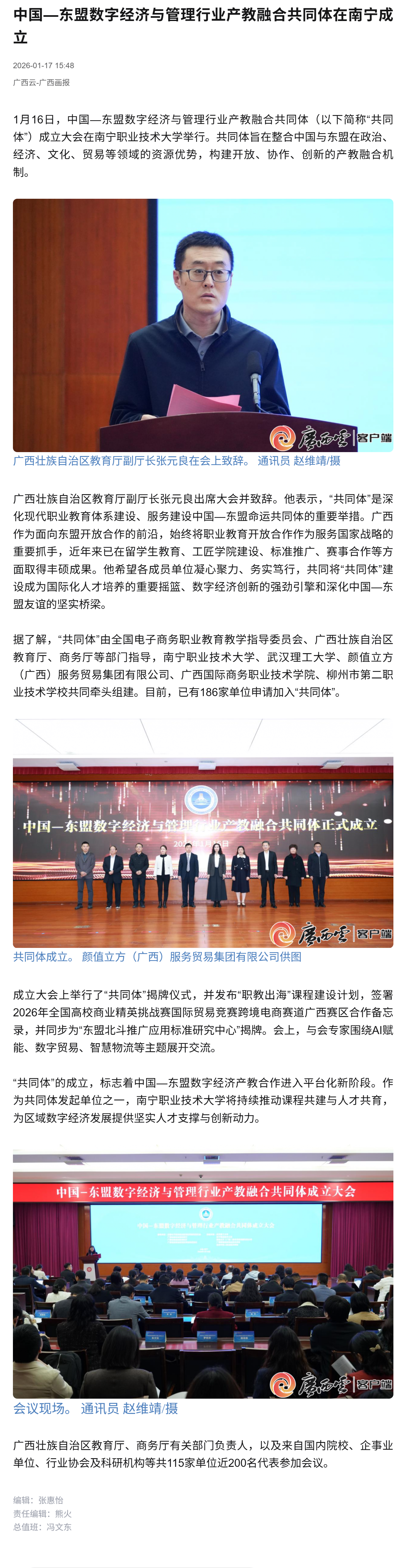 广西南宁职大:成立中国 — 东盟数字经济与管理行业产教融合共同体