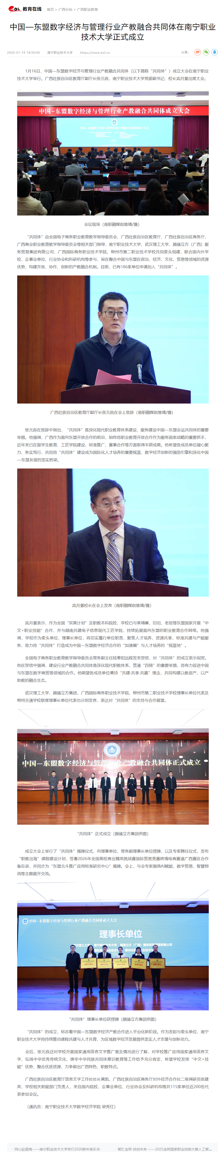 中国—东盟数字经济与管理行业产教融合共同体在南宁职业技术大学成立