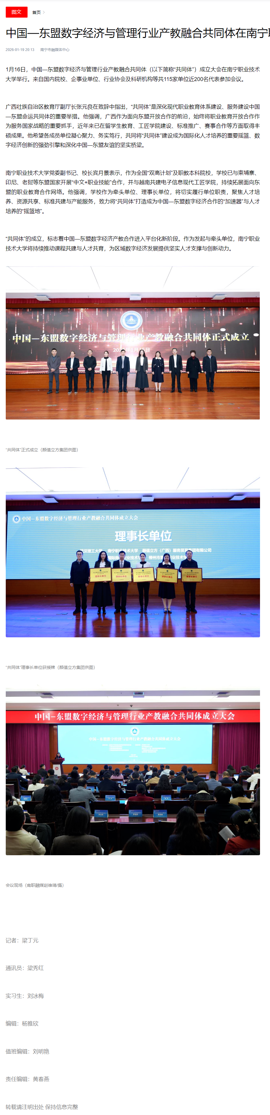 中国—东盟数字经济与管理行业产教融合共同体在南宁职业技术大学成立