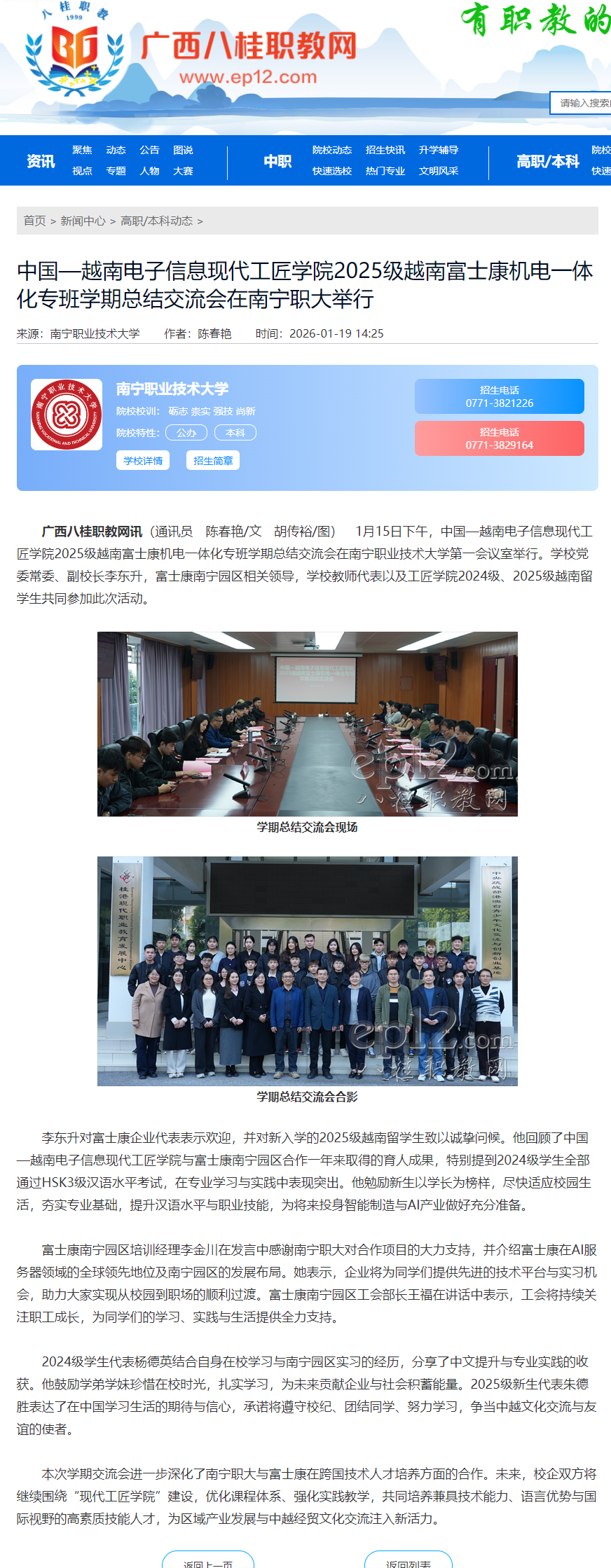 中国—越南电子信息现代工匠学院2025级越南富士康机电一体化专班学期总结交流会在南宁职大举行