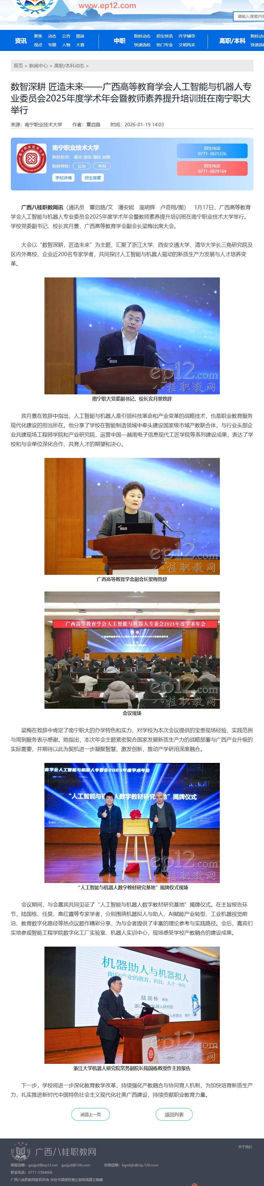 数智深耕 匠造未来——广西高等教育学会人工智能与机器人专业委员会2025年度学术年会暨教师素养提升培训班在南宁职大举行