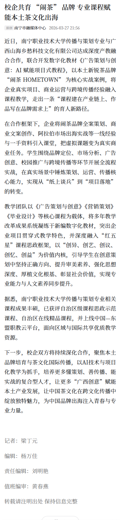 校企共育 “闹茶” 品牌 专业课程赋能本土茶文化出