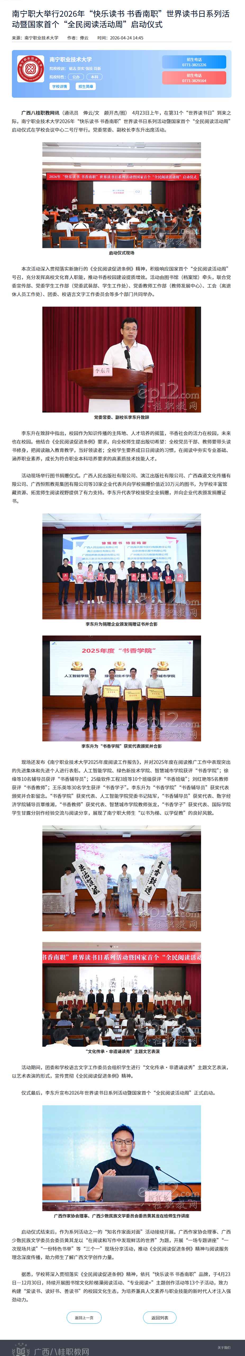南宁职大举行2026年“快乐读书 书香南职”世界读书日系列活动暨国家首个“全民阅读活动周”启动仪式