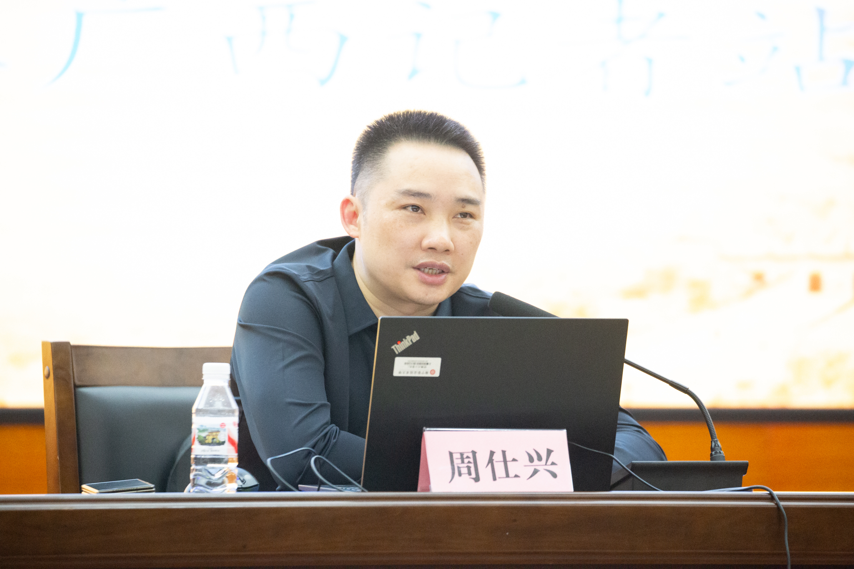 为持续抓好学校新闻宣传队伍建设,打造一支政治坚定、业务精湛、作风优良的新闻宣传“铁军”,为学校高质量发展提供强大的思想保证、精神动力和舆论支持,10月31日,我校在会议中心二号厅举行2025年新闻宣传队伍业务培训会,《光明日报》社广西记者站站长、高级记者周仕兴受邀作专题培训。