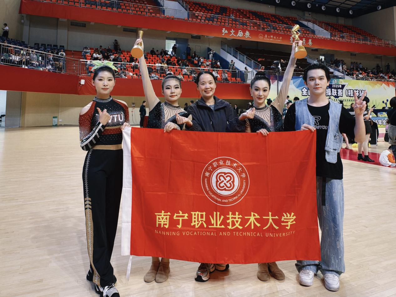 11月9日,全国啦啦操联赛(桂林站)在广西桂林市圆满落幕。我校啦啦操队在通识教育学院李婷婷老师的悉心指导下发挥出色,最终荣获公开青年丙组双人爵士自选动作第一名、双人花球自选动作第一名、双人街舞自选动作第二名的优异成绩。