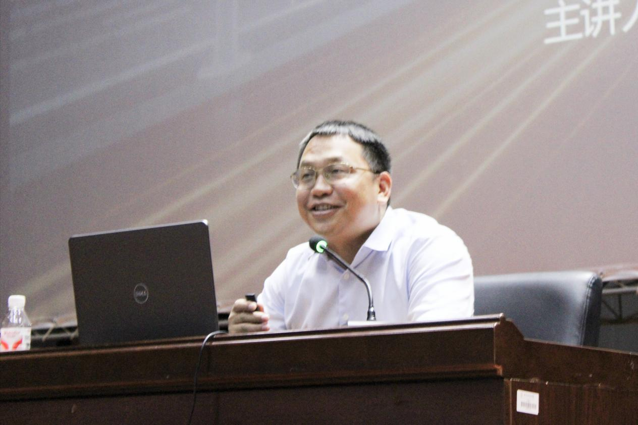 张仕明为学生作讲座(卢彩盈/摄)