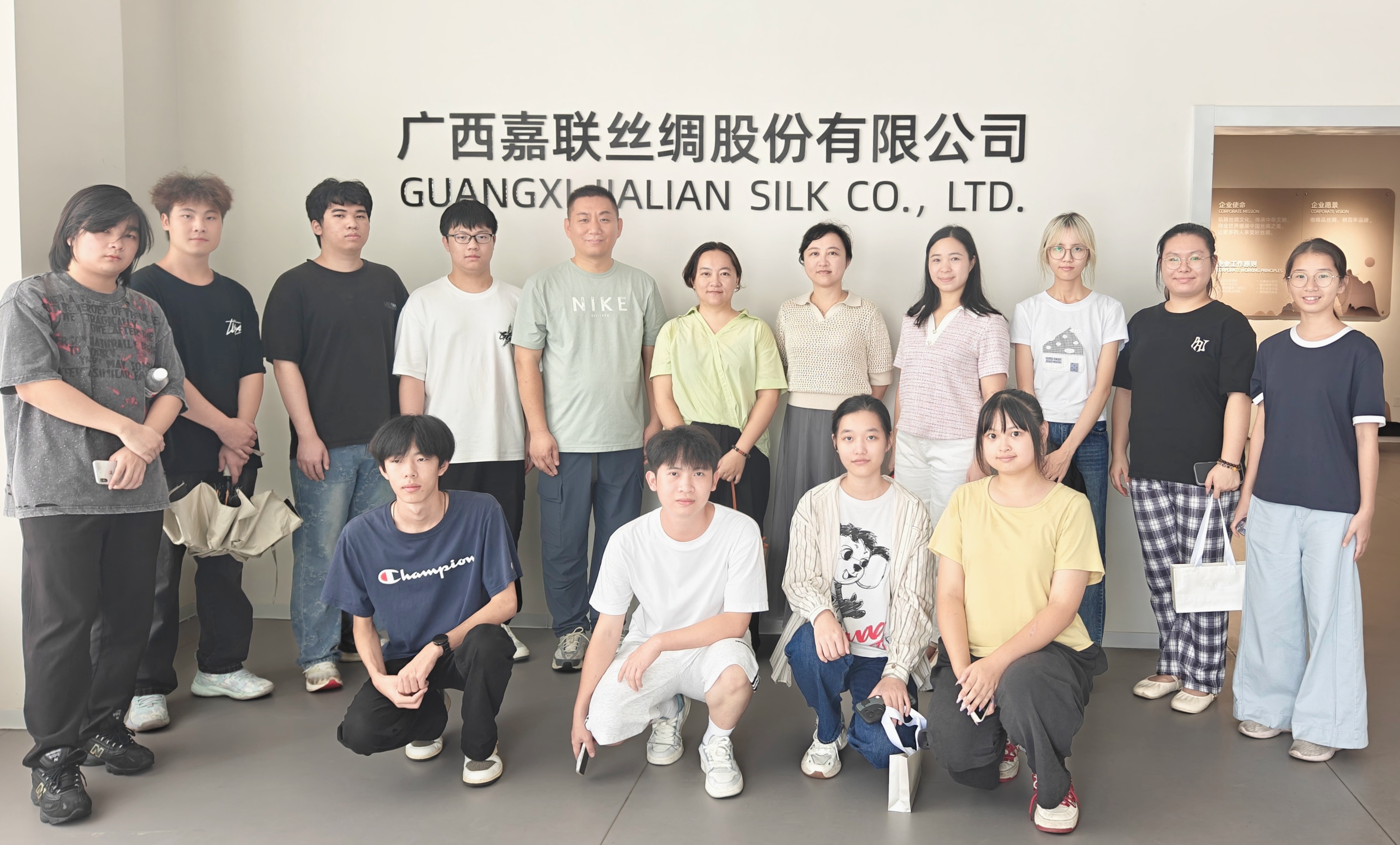 我校调研团队参观广西嘉联丝绸股份有限公司(谢飞/摄)