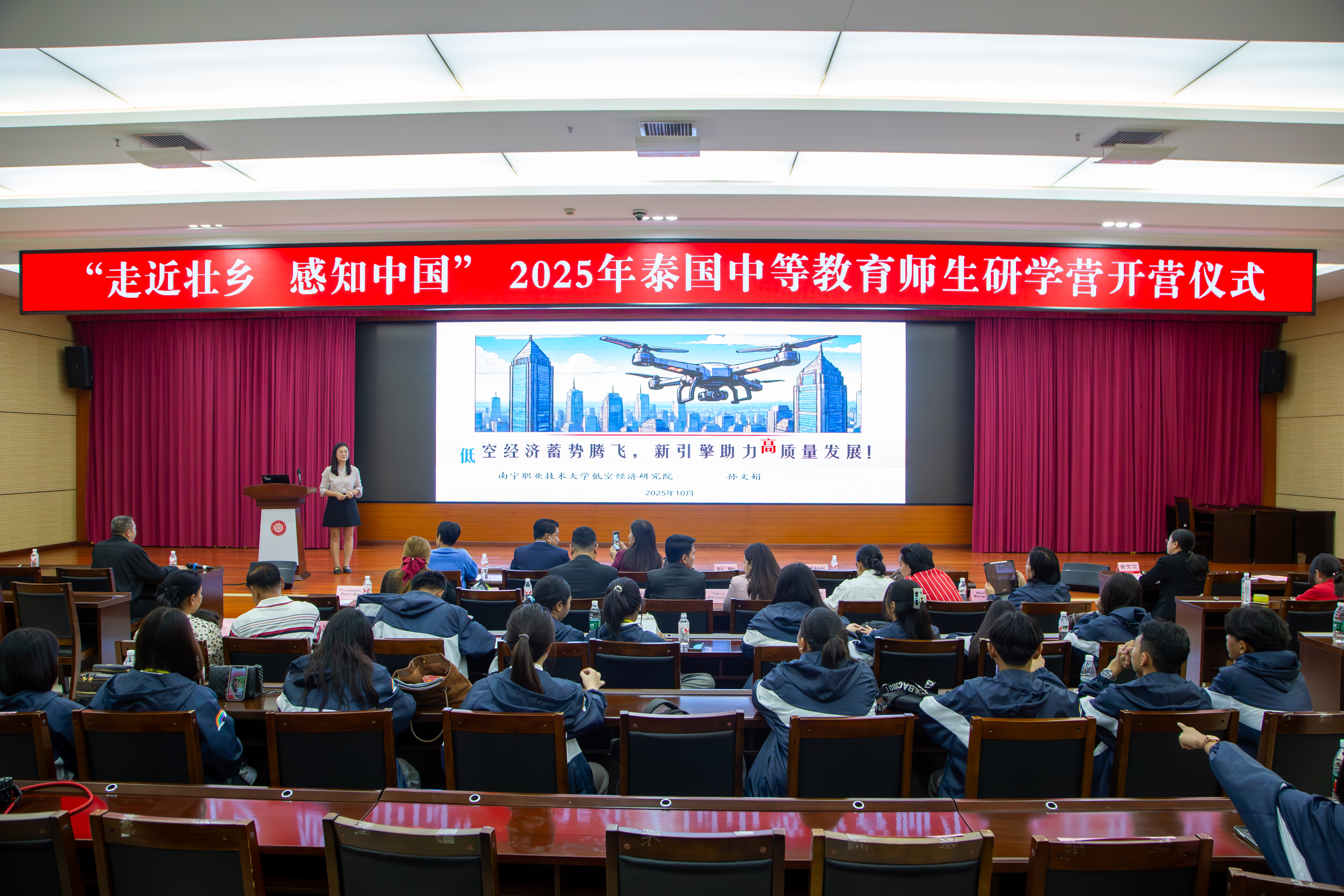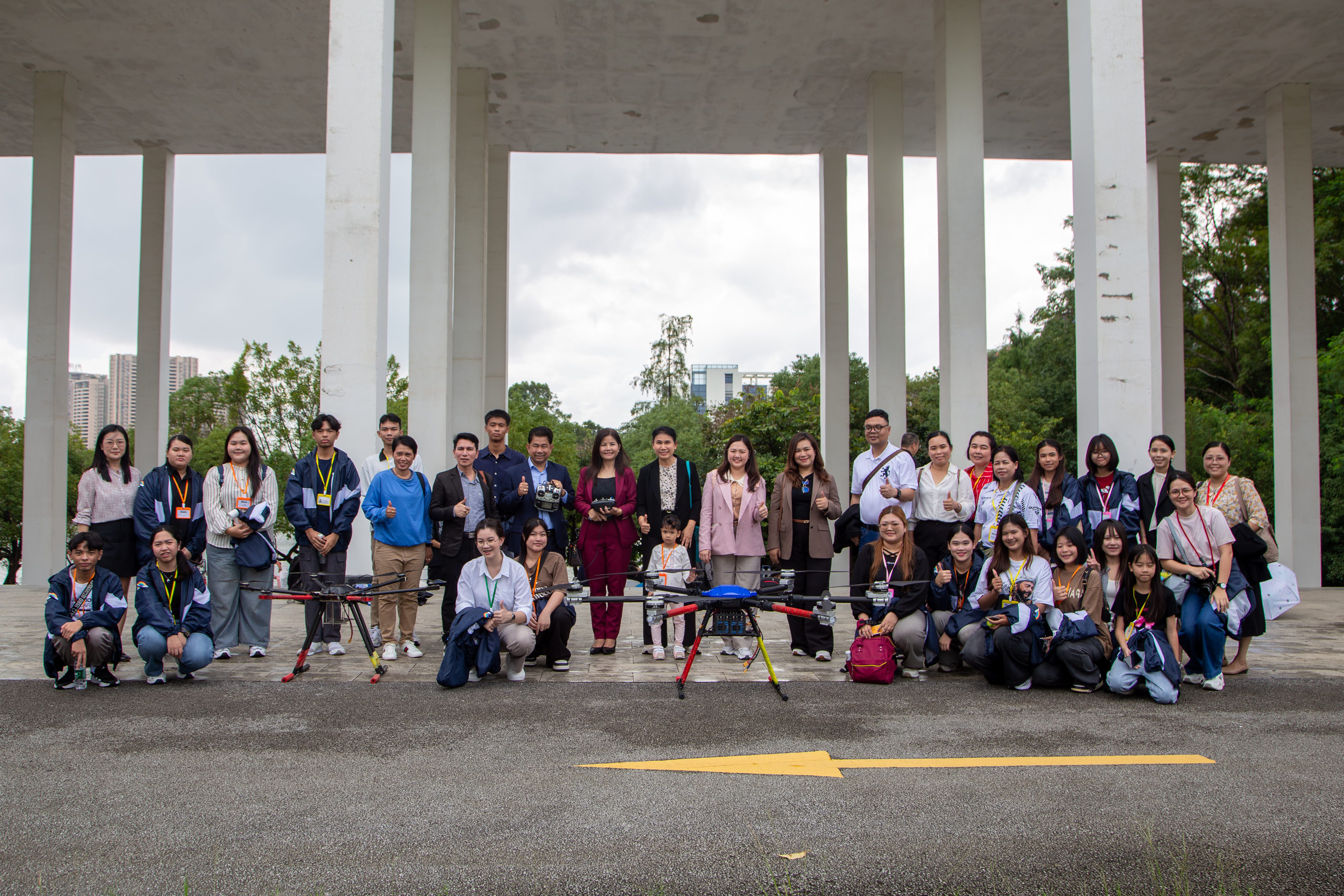 当低空科技遇见跨国情谊,当实践体验架起交流桥梁。10月14日上午,南宁职业技术大学金葵广场迎来了一群特殊的客人 ——2025年泰国佛统中等教育师生研学营的31名师生。在学校低空经济产业研究院的精心组织下,佛统府中等教育服务区办公室主任查雅努・苏茶娣博士带领13名泰国中等教育机构领导及18名泰国学生,沉浸式参与无人机体验及培训活动,在技术探索中深化中泰教育交流。