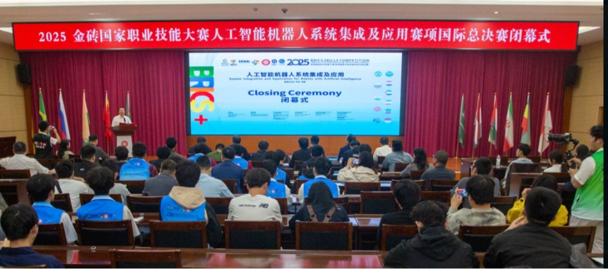 12月21日,2025年金砖国家职业技能大赛“人工智能机器人系统集成及应用”赛项国际总决赛在南宁职业技术大学落幕。来自中国、泰国、越南、印度尼西亚等国53支队伍经过两天的激烈角逐,在绿城南宁共同书写了技能竞技与国际友谊的精彩篇章。