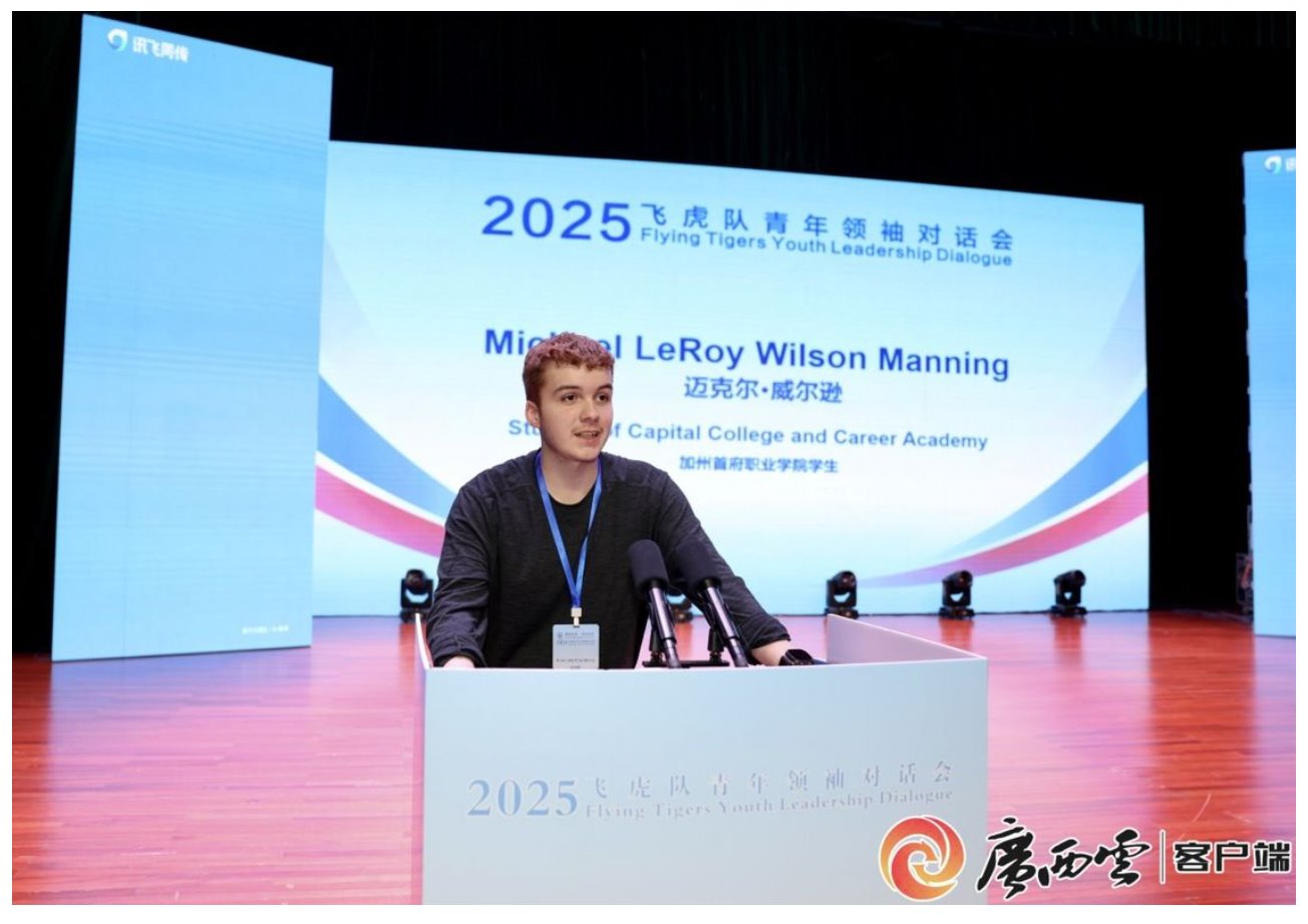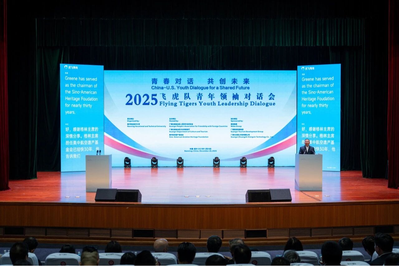 “中国美国友谊万岁!”12月26日,在广西南宁举行的“2025飞虎队青年领袖对话会”现场,随着全场中美师生代表共同用中文喊出这一响亮口号,对话会气氛走向高潮。