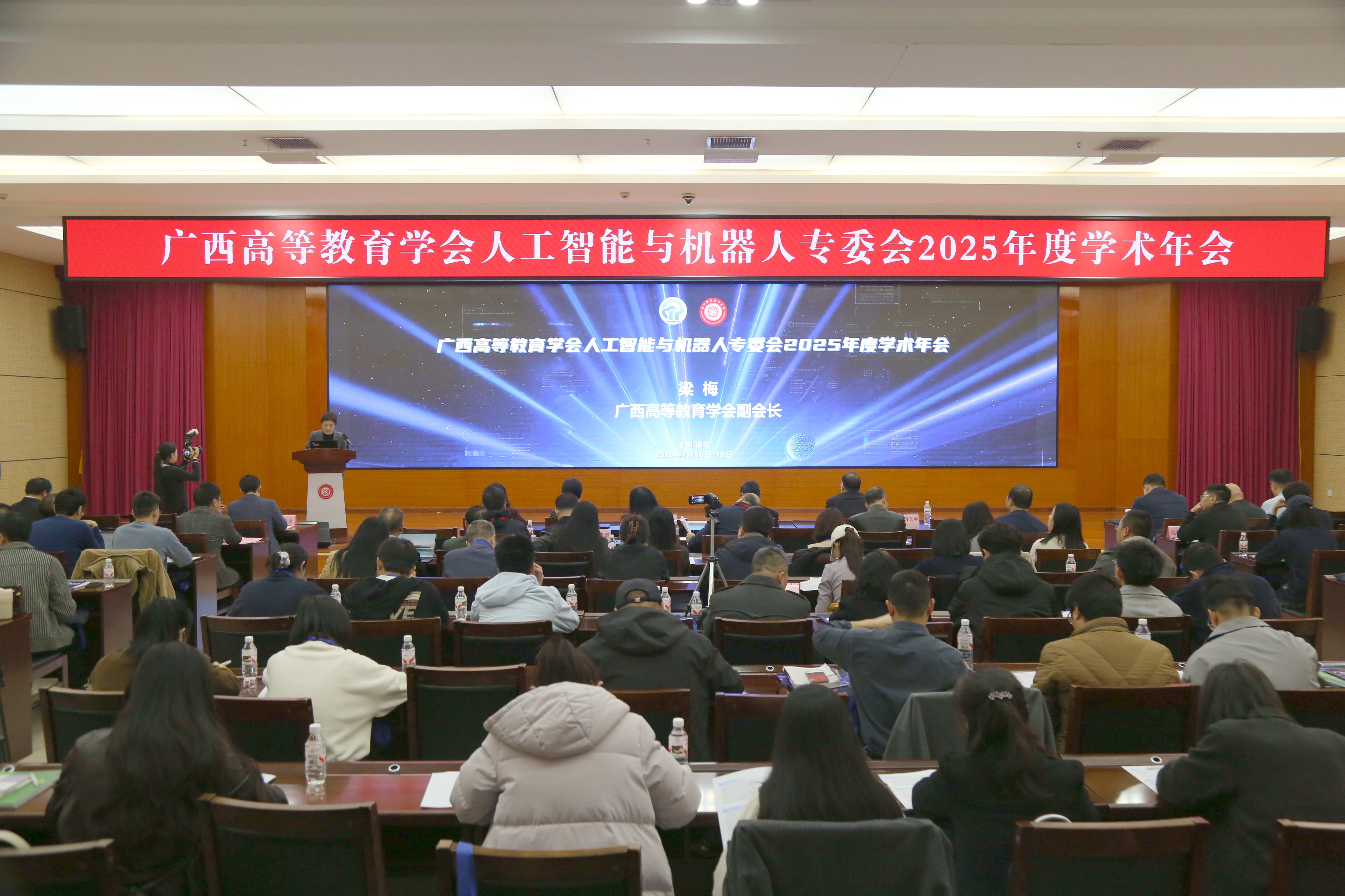 1月17日,广西高等教育学会人工智能与机器人专业委员会2025年度学术年会暨教师素养提升培训班在南宁职业技术大学举行。学校党委副书记、校长宾月景,广西高等教育学会副会长梁梅出席大会。