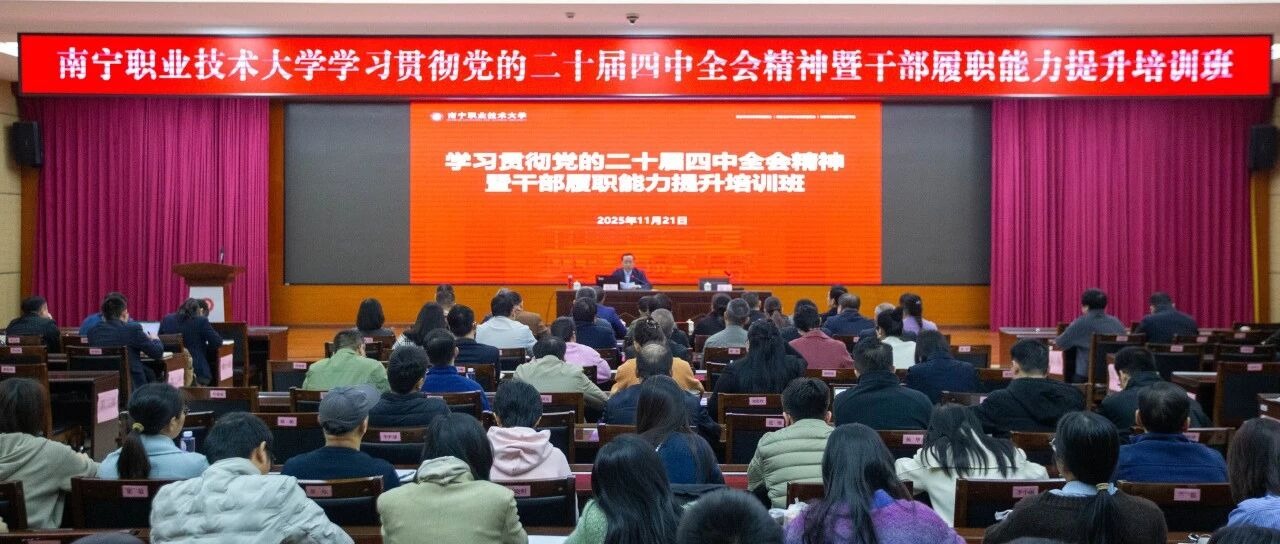 11月21至22日,我校在会议中心二号厅举办学习贯彻党的二十届四中全会精神暨干部履职能力提升培训班,深入学习贯彻党的二十届四中全会精神,进一步强化干部政治训练,提升广大干部履职能力。学校党委书记蹇兴超,党委副书记、校长周旺,在家学校领导班子成员,以及学校中层干部、内设二层机构中层干部共200余人参加培训。